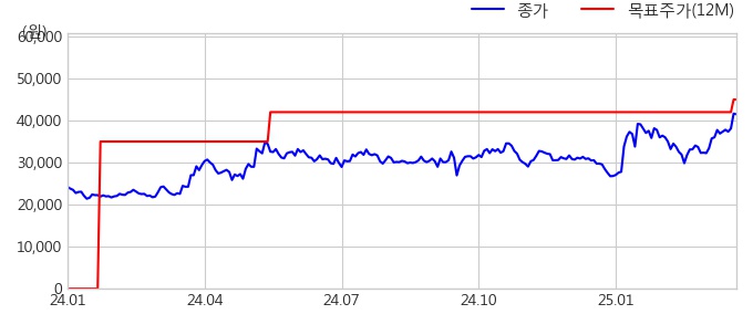 DS투자증권은 지난 10월 30일 이 종목에 대해서 목표주가 42,000원을 제시했었다. 이번 발표에서 목표주가는 +6.67% 상향 조정되었지만, 동일 기간 동안 주가가 더 큰 폭으로(+33.69%) 상승해서 투자 매리트는 다소 낮아졌음을 알 수 있다.