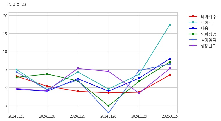 <그래프> 조선기자재 테마 주요 종목 등락률