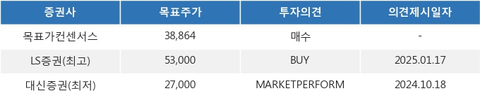 LS증권은 지난 10월 24일 이 종목에 대해서 목표주가 41,000원을 제시했었다. 이번 발표에서 목표주가는 +22.64% 상향 조정되었지만, 동일 기간 동안 주가가 더 큰 폭으로(+40.25%) 상승해서 투자 매리트는 다소 낮아졌음을 알 수 있다.