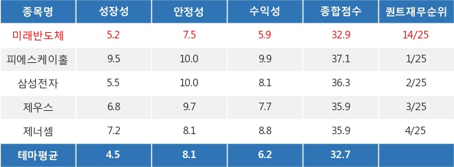 ◆미래반도체의 퀀트 재무 점수 32.88점, 테마 내 14위