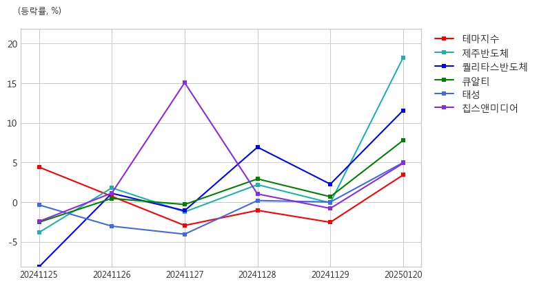 <그래프> 온디바이스 AI 테마 주요 종목 등락률