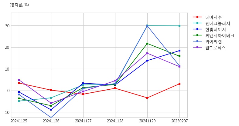 <그래프> 유리 기판 테마 주요 종목 등락률