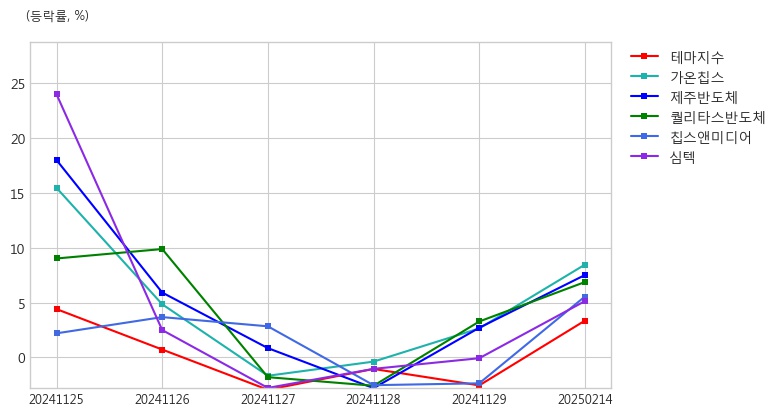 <그래프> 온디바이스 AI 테마 주요 종목 등락률